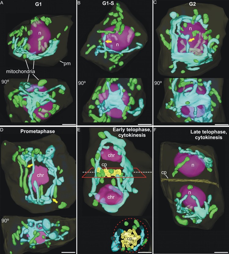 Seguí-Simarro J.M., Coronado M.J. y Staehelin L.A. (2008). The mitochondrial cycle of Arabidopsis shoot apical meristem and leaf primordium meristematic cells is defined by a perinuclear tentaculate/cage-like mitochondrion. Plant Physiol.